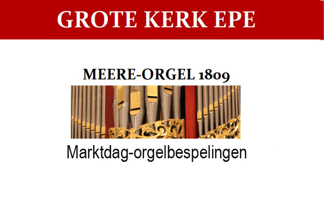 Marktdag-orgelbespelingen 11:30 - 12:00 alle woensdagen in juli en augustus, kerk open, toegang vrij. www.meereorgelepe.nl
